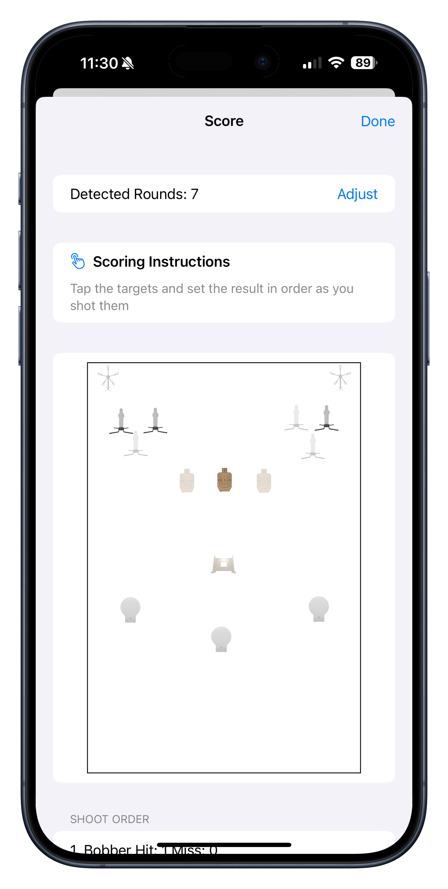 Set your scores as naturally as you shoot. Just tap each target in your shooting order and mark your hits — Alpha, Charlie, Delta for paper targets, or Hit/Miss for steel. The app automatically detects your rounds and guides you through scoring, making post-stage documentation quick and precise.